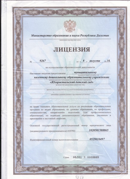 | Полное наименование образовательной организации* | Муниципальное казенное дошкольное образовательное учреждение "Юхаристальский детский сад" |
