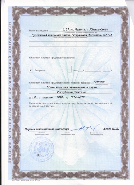 | Адрес местонахождения образовательной организации* | 368774 Республика Дагестан, Сулейман-Стальский район, с.Юхаристал ул. Ленина 27 |